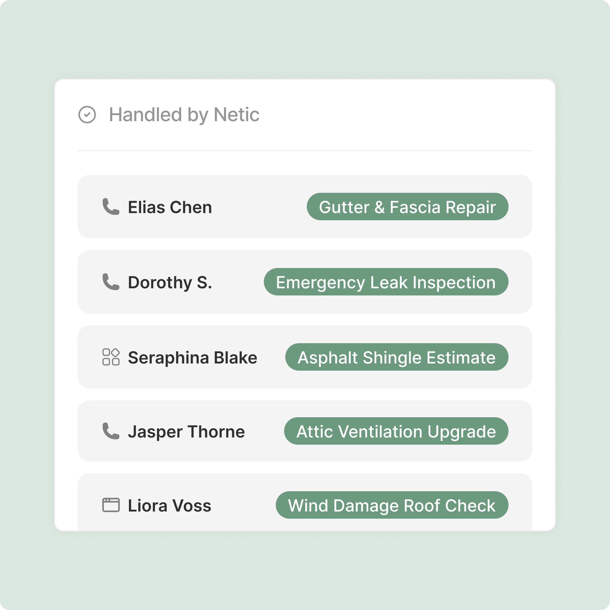 Netic manages inbounds, auto-runs outbound marketing, optimizes scheduling & dispatching, and provides real-time analytics to improve your operations immediately.